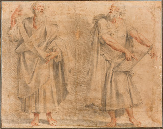 Acabé el apunte anterior mencionando que pintar sin bocetos previos no era una extravagancia en los años a caballo entre el siglo XVI y XVII. Entre los grandes autores y las grandes obras, lo normal era preparar la obra con disegni (bocetos, dibujos) y preparar una equilibrada composición, idealizada, simbólica e intelectual (creatio), pero conectada con la realidad (imitatio). Sin la ayuda del boceto preparatorio, este tipo de composiciones podría, fácilmente, caer en el caos y el despropósito. De ahí la desconfianza que despertaba Caravaggio, que no empleaba este sistema para componer sus obras.